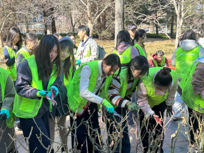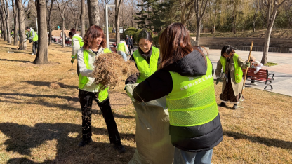 春回大地,万物复苏。为迎接我国第48个植树节,进一步践行习近平生态文明思想,推动“五位一体”总体布局中生态文明建设在青年群体中的深入落实,2026年3月11日上午,国际关系学院本科生党支部开展“不负春光 履‘植’尽责”绿化养护劳育活动,组织全体党员及部分发展对象、入党积极分子共49人前往马甸公园义务植树基地开展志愿服务,通过清扫绿地、修剪月季等方式参与绿化养护,以实际行动为首都花园城市建设贡献力量。