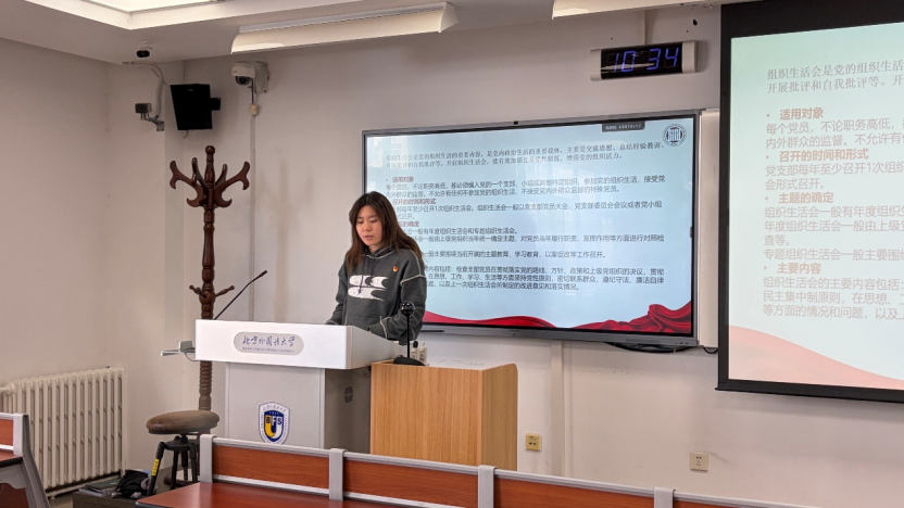 会议伊始,张顾子煊代表支部作年度工作汇报,从组织建设、活动开展和党员发展三个方面系统总结了支部过去一年的工作情况与成效。同时,她介绍了组织生活会和民主评议党员制度的基本内涵、程序要求及重要意义,并对本次会议主题作了说明。